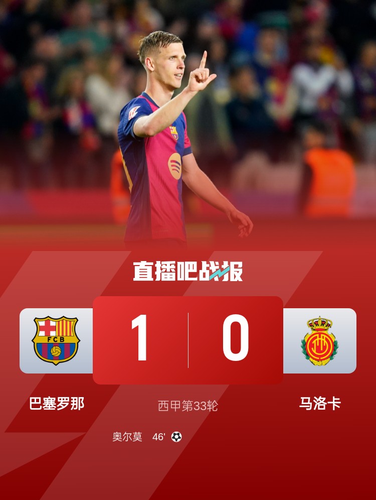 西甲第33輪,巴薩1-0馬洛卡,聯(lián)賽三連勝。上半場,奧爾莫中柱,巴薩轟24腳射門依然未能進球;下半場,埃里克-加西亞助攻奧爾莫破門,亞馬爾失單刀。