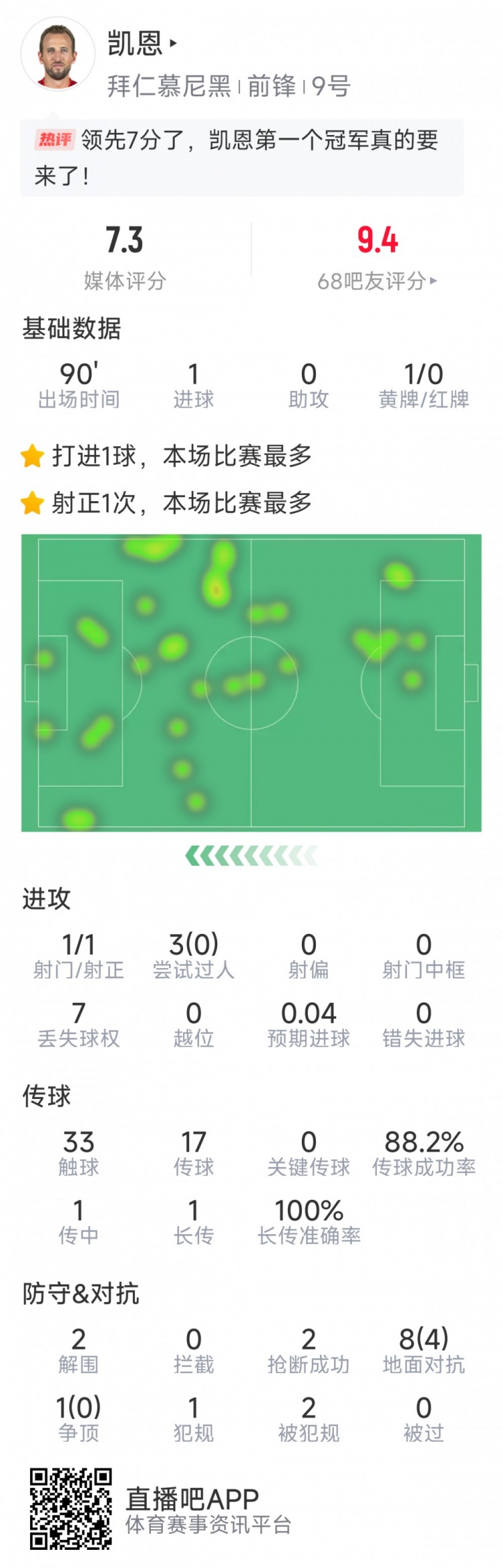 1月26日訊 在本輪德甲,拜仁2-1擊敗弗賴堡,凱恩破門,以下為他在本場數(shù)據(jù):比賽時(shí)間90分鐘1粒進(jìn)球1次射門33次觸球傳球成功率88.2%2次解圍2次搶斷9次對抗4次成功sofa評分7.3分 本文標(biāo)簽: 足球 德甲 拜仁慕尼黑