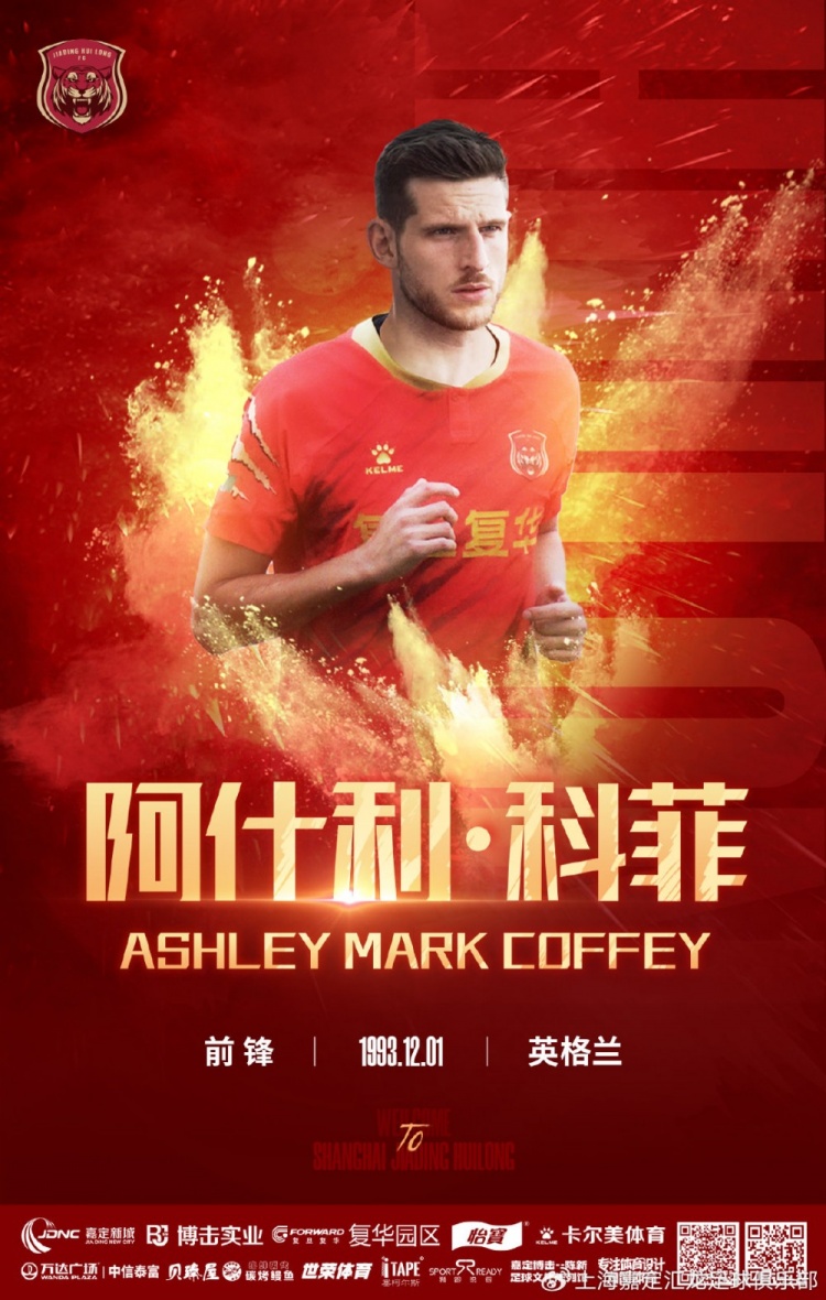 經(jīng)過友好協(xié)商,球員阿什利-科菲正式加盟上海嘉定匯龍足球俱樂部。