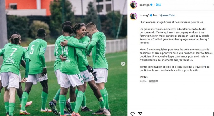 阿穆古表示:“謝謝@圣埃蒂安俱樂部。我在這里度過了4年美好時光,這也將是一生的回憶。非常感謝我成長過程中的老師和教練們,尤其感謝Razik和Kevin教練,他們讓我在場上場下都變得更為成熟。感謝我的隊友們,我們一起度過了很多美好的時光。也感謝球迷們的熱情支持和陪伴?!?/p>