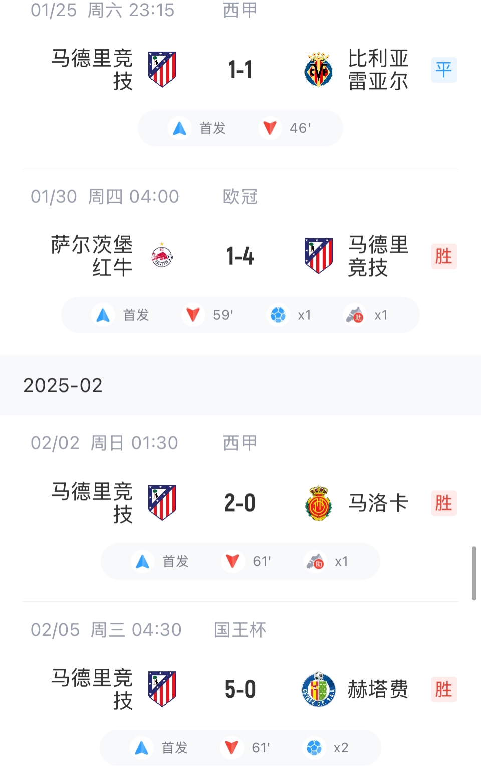 02月05日訊 馬競在本輪國王杯主場5-0血洗赫塔費,西蒙尼的三兒子朱利亞諾-西蒙尼本場打進2球。朱利亞諾-西蒙尼現(xiàn)年22歲,近期已逐漸成為馬競首發(fā)球員,在馬競的近三場比賽里他全部首發(fā)出戰(zhàn),一共貢獻了3球2助。朱利亞諾-西蒙尼近期數(shù)據(jù): 本文標簽: 足球 西甲 馬德里競技 赫塔費