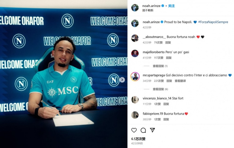 2月5日訊 米蘭邊鋒奧卡福在冬窗截止日壓哨租借加盟那不勒斯半個賽季,他也通過社媒曬照紀念。奧卡福曬出自己和那不勒斯的簽約照,并表示:“很自豪能夠來到那不勒斯?!备鶕饲跋?,那不勒斯向米蘭支付150萬歐元租借奧卡福,選擇買斷費2350萬歐。24歲的奧卡福司職邊鋒,德轉身價1500萬歐元,本賽季為米蘭各項賽事17場貢獻1球2助攻。 本文標簽: 足球 意甲 AC米蘭 那不勒斯
