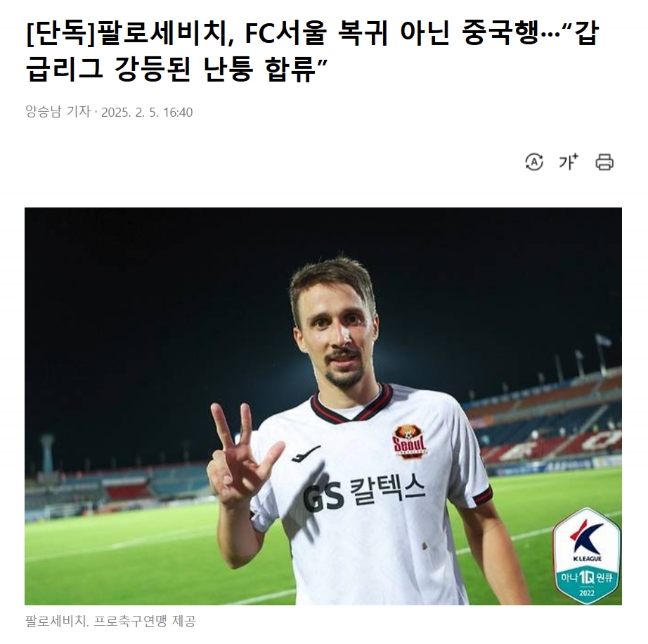 不過據(jù)韓媒“京鄉(xiāng)體育”報道,首爾FC俱樂部內(nèi)部人士在接受采訪時透露的確有中國球隊有意球員。這名人士表示:“的確有中國球隊對帕洛切維奇有意,但是截至目前正式轉(zhuǎn)會程序并未啟動,球隊將遵循球員意愿。”該媒體透露,轉(zhuǎn)會有望很快就能完成。