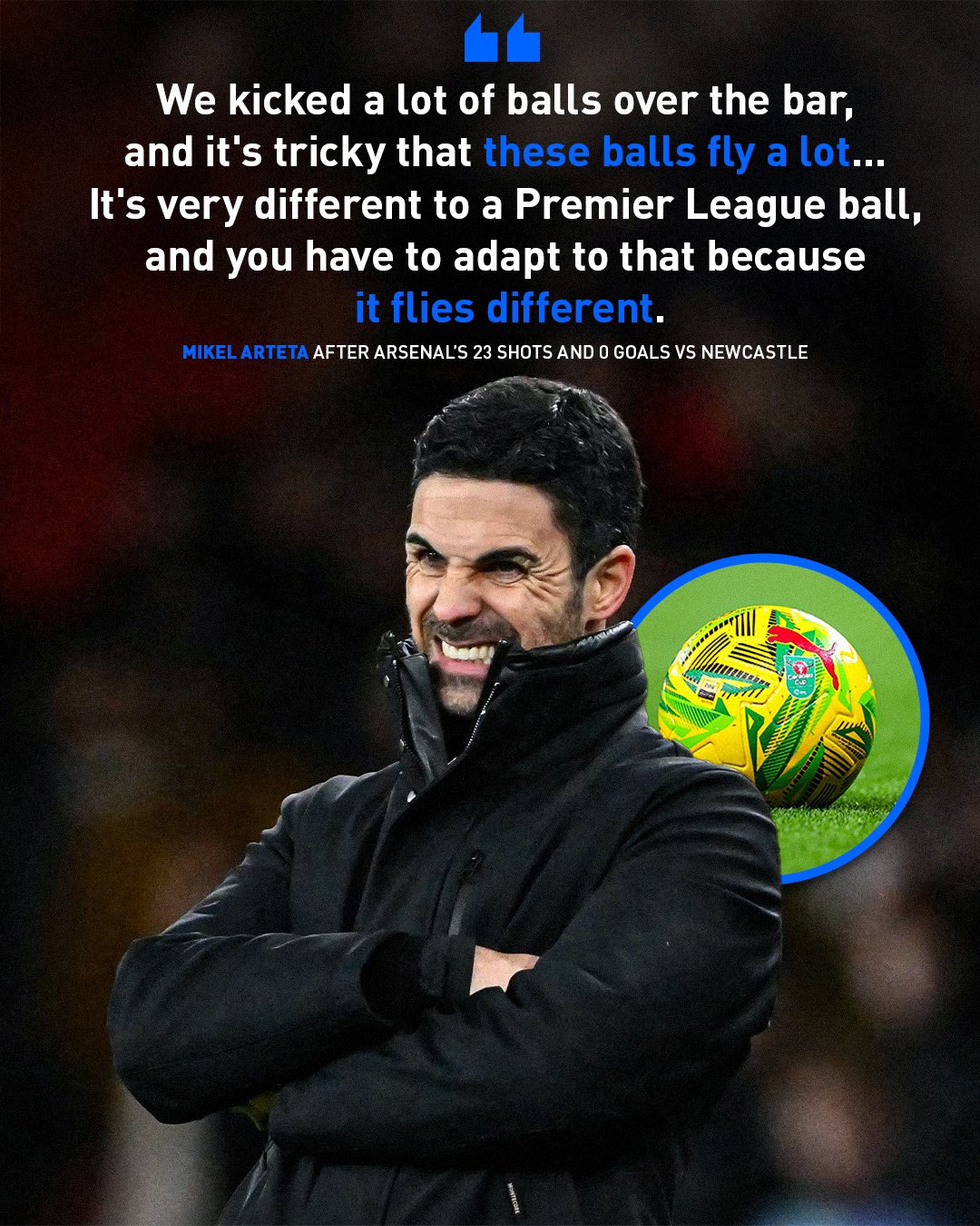在首回合阿森納主場0-2不敵紐卡的賽后,阿爾特塔談到了比賽用球,表示聯(lián)賽杯用球與英超用球非常不同,必須要適應?!?/u>