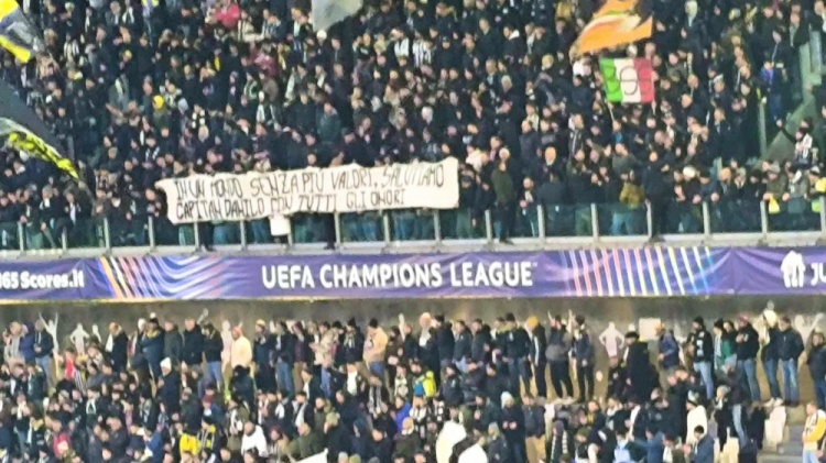1月30日訊 意大利媒體《羅馬體育報》報道,在尤文圖斯歐冠主場同本菲卡的比賽中,斑馬球迷通過橫幅,還有合唱等形式,告別達尼洛。在效力尤文圖斯五年半后,達尼洛加盟弗拉門戈。