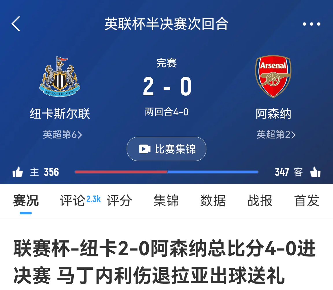 02月06日訊 英聯(lián)杯半決賽次回合,阿森納0-2紐卡兩回合0-4慘遭淘汰。