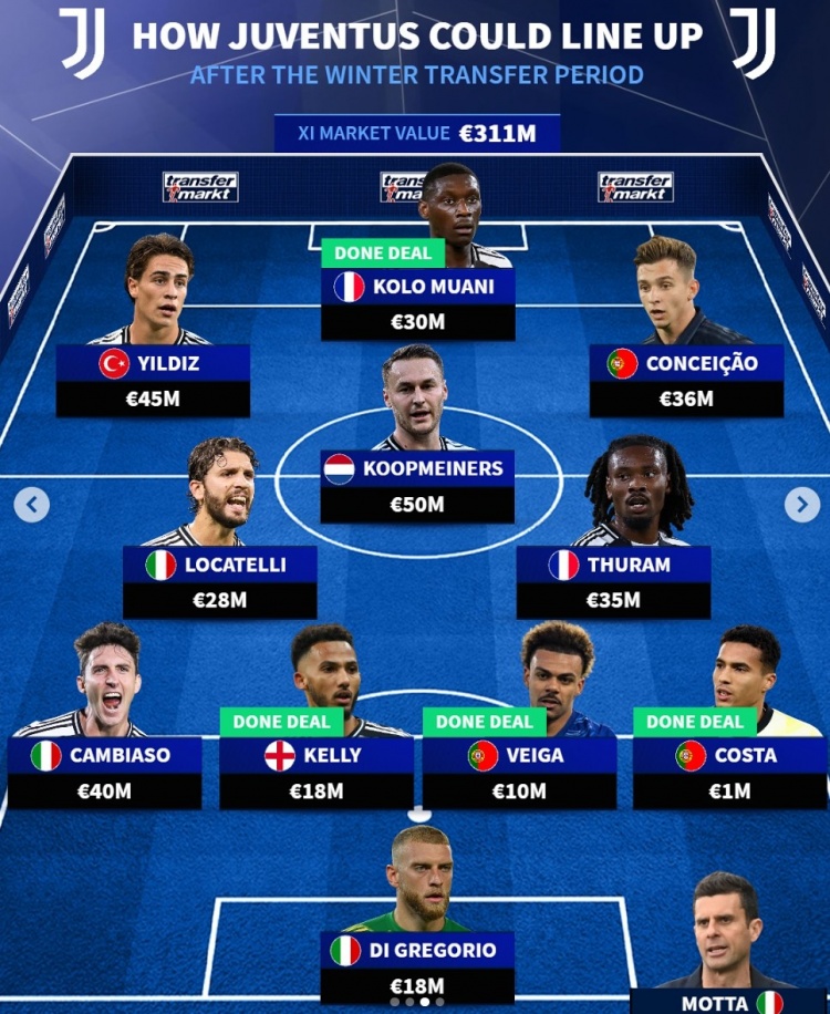 2月7日訊 五大聯(lián)賽冬窗已經(jīng)結束,《轉會市場》也根據(jù)補強預測了尤文的主力陣容,多位租借加盟的新援在列。