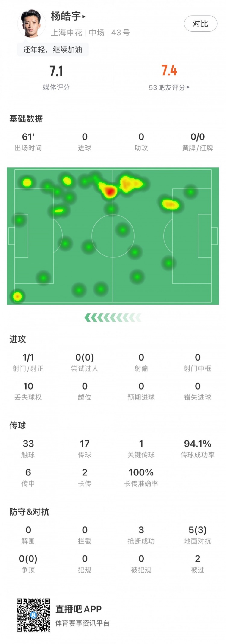 2月7日訊 2025中國超級杯賽,楊皓宇上演申花職業(yè)生涯首秀。本場比賽他在第61分鐘被換下,此役他個人主要數(shù)據(jù)如下:出場時間:61分鐘射門:1射正:1傳威脅球:1傳球:17傳球成功:16傳中球:6長傳:2精準長傳:2搶斷:3丟失球權:10 本文標簽: 足球 中超 中國足球 上海申花