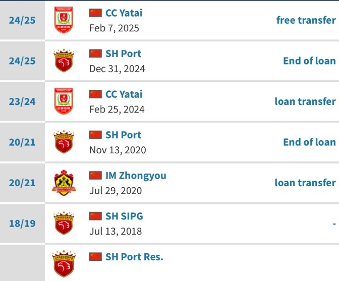 李申圓的個人頁面中顯示,今天他已經(jīng)以自由身轉會加盟長春亞泰。