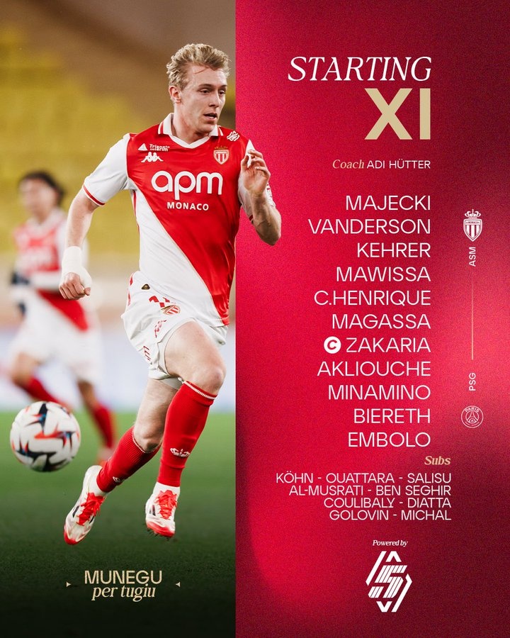 摩納哥替補(bǔ):庫恩、瓦塔拉、薩利蘇、阿爾穆斯拉蒂、本-塞吉爾、馬馬杜-庫利巴利、迪亞塔、戈洛文、盧卡斯-米哈爾