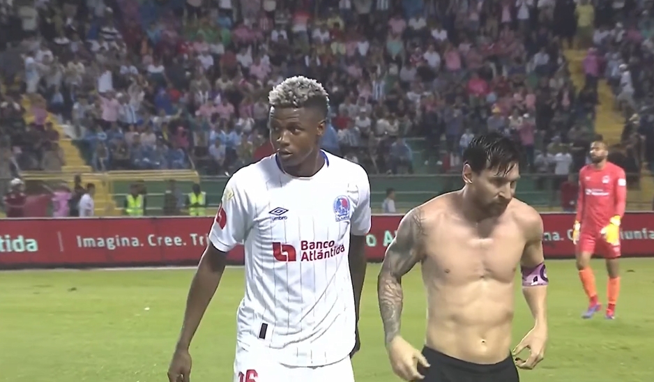 又光膀子了~上半場結(jié)束,對手要走了梅西的球衣