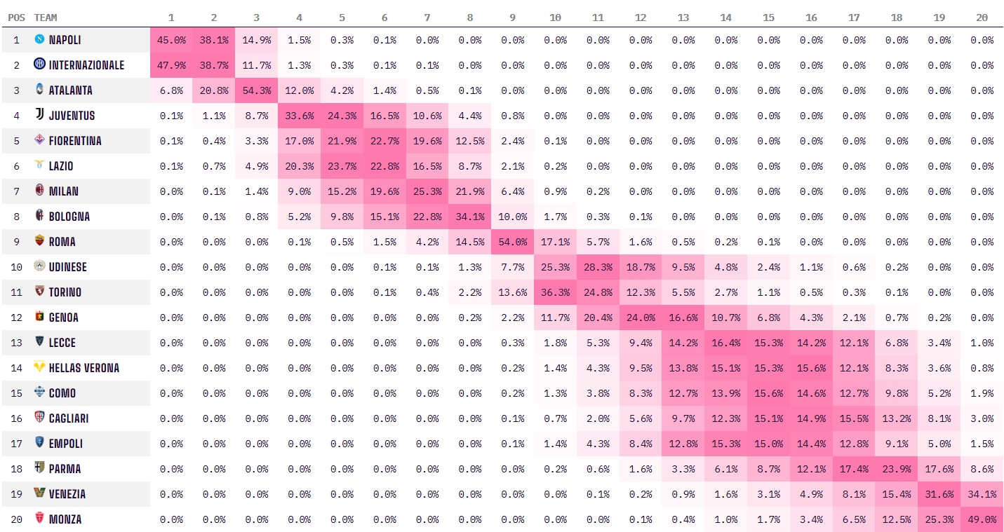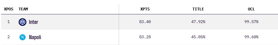 02月09日訊 數(shù)據(jù)機構(gòu)Opta對意甲奪冠概率的最新預(yù)測顯示,國米稍稍被看好。機構(gòu)演算數(shù)據(jù)顯示,國米本賽季意甲奪冠概率為47.9%,比目前排名榜首的那不勒斯高出近3個百分點,那不勒斯奪冠概率為45%,機構(gòu)預(yù)測兩隊季末都是83個積分收官。 本文標(biāo)簽: 足球 意甲 國際米蘭 那不勒斯
