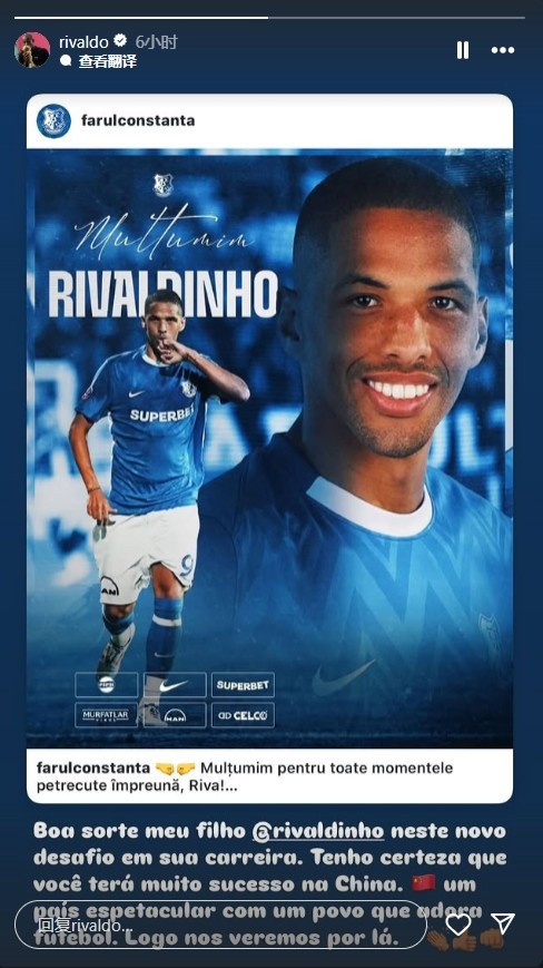 在個(gè)人社媒,里瓦爾多曬出里瓦爾迪尼奧加盟青島紅獅的官方照,同時(shí)配文:“祝我的兒子在職業(yè)生涯的新挑戰(zhàn)中好運(yùn),我相信你在中國一定會(huì)成功,中國是一個(gè)有著熱愛足球的人民的國家,很快就會(huì)見面?!?/p>