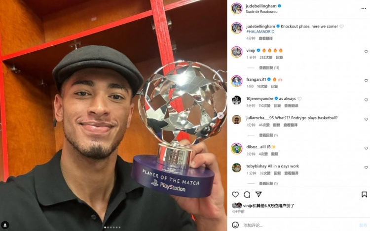 1月30日訊 在本輪歐冠,皇馬3-0完勝布雷斯特。本場比賽貝林厄姆破門,賽后他也當選歐冠官方全場最佳。貝林厄姆個人社媒曬出與全場最佳獎杯合影,配文寫道:“淘汰賽階段比賽,我們來了!” 本文標簽: 足球 西甲 皇家馬德里