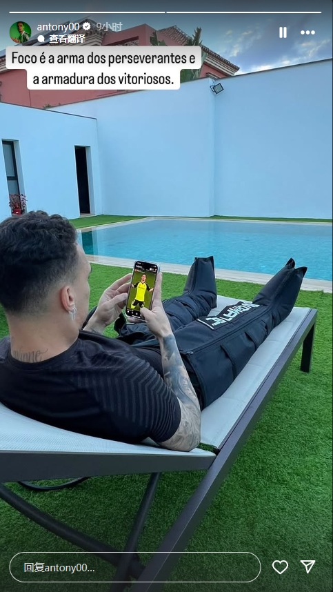 2月11日訊 安東尼更新社媒動態(tài),曬出自己的日常照片。安東尼社媒曬出自己在泳池邊躺椅上恢復(fù)的照片,配文:“專注是堅持者的武器,也是勝利者的鎧甲。”安東尼冬窗從曼聯(lián)租借加盟貝蒂斯,為貝蒂斯出戰(zhàn)2場比賽,打進1球,兩場比賽均當選最佳球員。 本文標簽: 足球 英超 曼聯(lián) 西甲 貝蒂斯