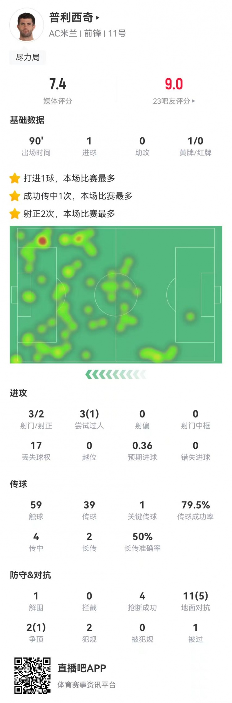 1月30日訊 米蘭在本輪歐冠1-2不敵薩格勒布迪納摩,普利西奇本場數(shù)據(jù)如下:首發(fā)踢滿90分鐘1球預期進球0.36預期助攻0.3559觸球39傳球、31成功,成功率79%1關鍵傳球4傳中、1成功2長傳、1成功3射門、2射正3過人、1成功13對抗、6成功17丟失球權2犯規(guī)1解圍4搶斷獲評7.4分 本文標簽: 足球 意甲 AC米蘭 歐冠